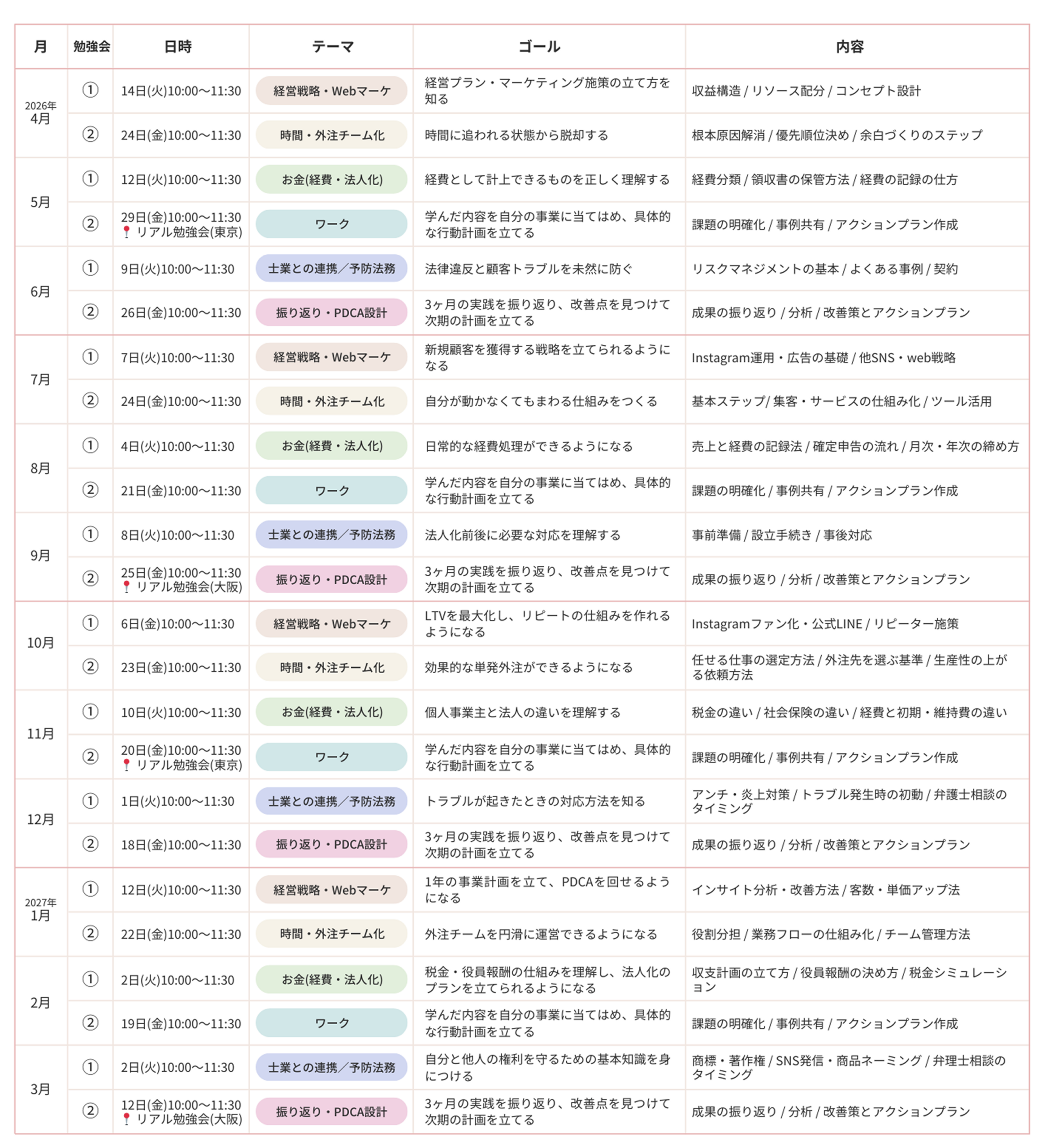 ビジネスを続けていくためには、集客や成長の設計と、お金・契約・法律といった守りの判断、どちらも欠かせません。